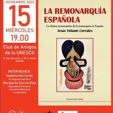 El libro La Remonarquía española, obra póstuma del periodista y escritor Jesús Ynfante, se presenta en Madrid el miércoles 15 de noviembre de 2023. La cita es en el Club de Amigos de la UNESCO (c/ San Bernardo, 20-2ª planta) a las 19 horas. Intervienen en el acto Isabelo Herreros, prologuista de esta obra, y Margarita García Díaz, representante de la Casa de la Memoria La Sauceda. Esta monografía la han editado la Asociación Casa de la Memoria, el Foro por la Memoria del Campo de Gibraltar y el Servicio de Memoria Histórica…